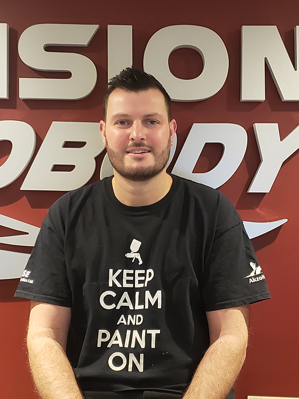 Nick joined the team in 2017 and became a Journeyperson in 2021. Nick spends his day in the Prep and Paint department and is responsible for organizing the workflow of the 2 departments. He helps in the prep department and paints when we need another set of hands When he is not getting your vehicle ready for a shiny new coat of paint, he enjoys sledding, car meets, and hanging with the boys.